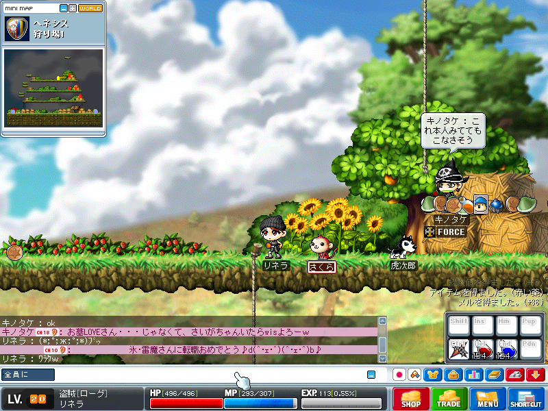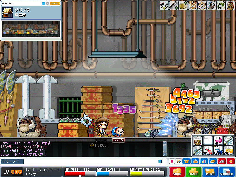 狩場3でまったりソロ狩りしつつ、緑キノコが1撃になったので、