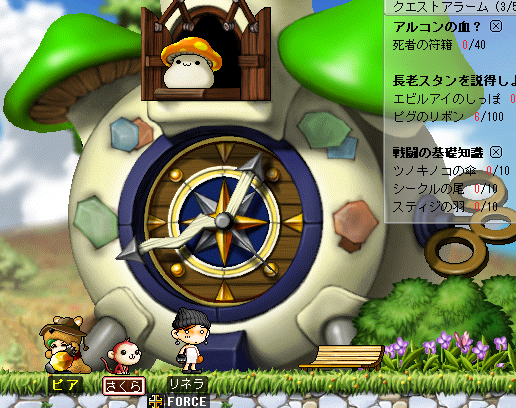 狩場1にもどり緑キノコを(*'Ι')ノツ)゚ロ゚)ペチペチ