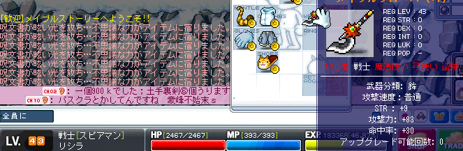 メイポ装備が出てきてくれません(´ノωノ`)メソメソ