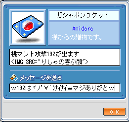 さて、Inして早々ショップにはいると、あみちゃんからプレゼントが!