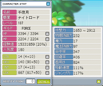 ちなみに前のはDEX10 Luk1でした。